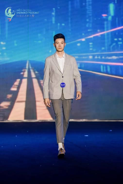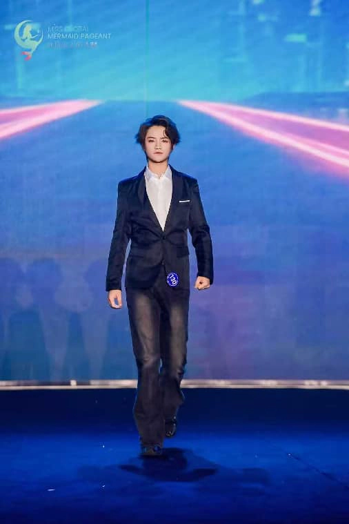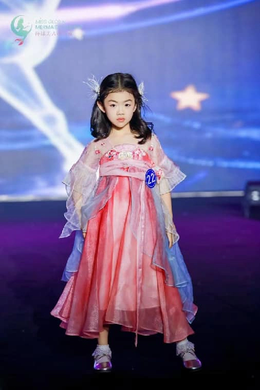 逐梦荣耀,锋芒亚洲,当星光坠入深海,当优雅邂逅勇气,一场跨越国界、连接环保热爱的视觉盛宴绽放。伴随着轻柔的海浪声,大赛现场的屏幕展现出海的蔚蓝与纯净,一位身穿华服的小女孩的童声传来:妈妈快来呀,小朋友们快来呀,看海多蓝多美呀!即刻,舞台上热闹起来,小美人鱼、小海神、青春组选手踏浪而来,有温暖的家庭组合,亲密的情侣组合,幼儿园老师带着小朋友海边游玩的组合,闺蜜相约看海的组合等,共同用美与大自然连接的姿态诉说着对海洋世界的无限向往。舞台各种温暖的美在展示,无比的放松感欢悦着全场,受感染的欣赏者目光里充满了对海洋全新的爱。