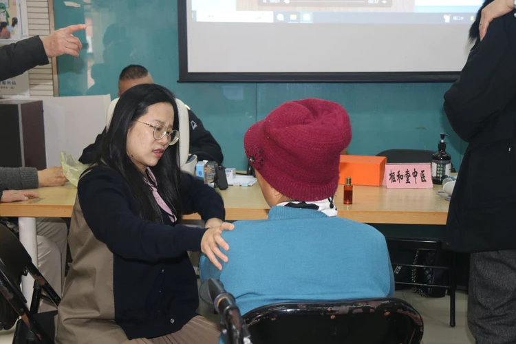 理论课程结束后,枢和堂的团队立即投入到现场健康保健服务中。他们耐心细致地为有需要的居民进行肩颈放松、穴位按压等调理服务,并针对个人情况给予个性化的日常保健建议。专业的手法、专注的态度和耐心的解答,赢得了在场居民的一致好评。