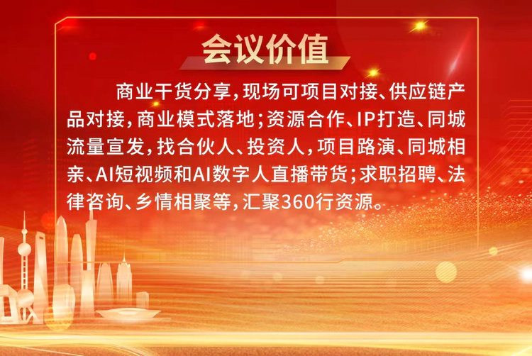本次峰会亮点十足,干货满满。大会特邀国内顶级商业培训大师李强、心灯文化创始人泰哥、互联网营销师王芳、百亿流量疗愈音乐人张绍飞、品牌营销专家袁一平等行业大咖亲临现场,围绕私域电商运营、AI全域流量裂变、IP打造、商业模式落地等核心议题,带来实战干货分享,助力老乡们破解创业难题、实现业绩倍增。同时,峰会设置项目对接、供应链合作、资源链接、同城相亲、法律咨询等多元环节,为异乡创业者搭建全方位的交流合作平台,让老乡们在抱团互助中共享机遇、共赢发展。